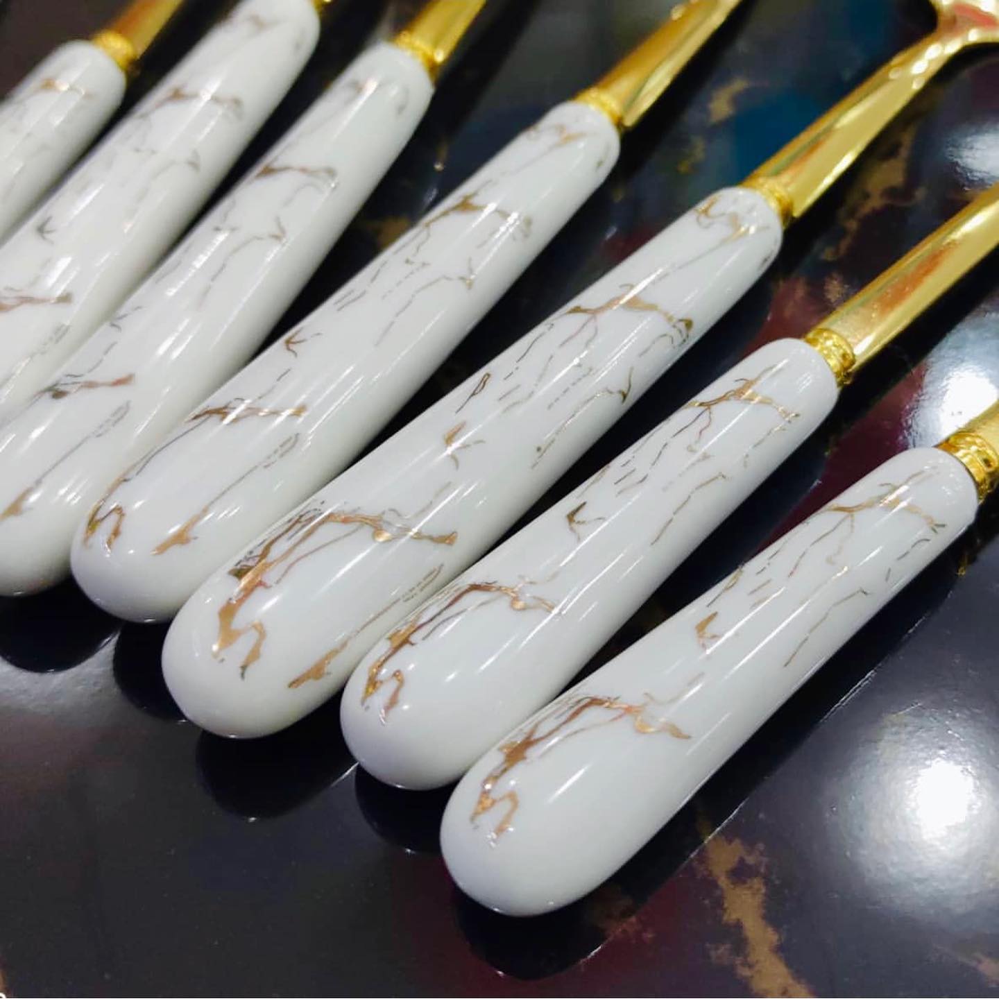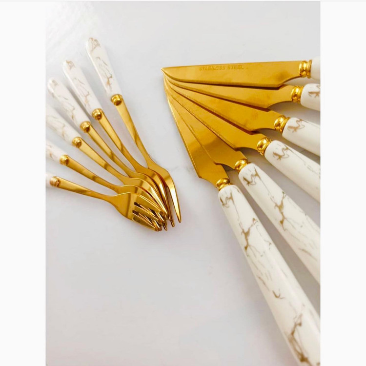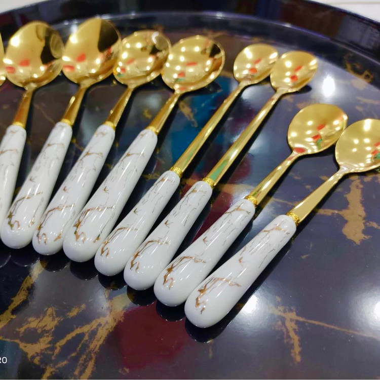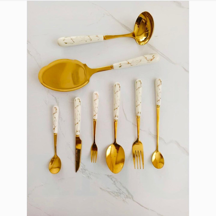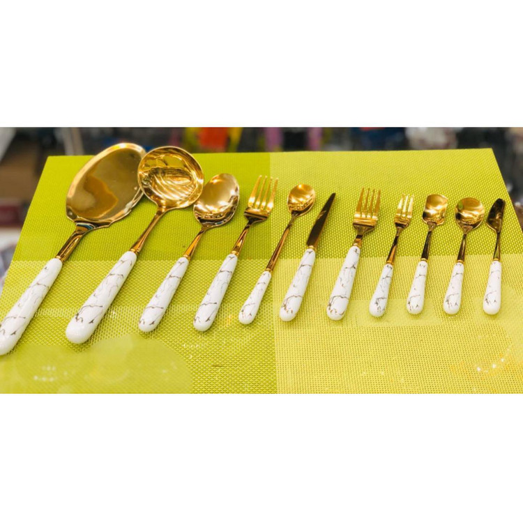 سری کامل قاشق و چنگال سرامیکی با طرح ماربل – شیک، مدرن و خاص!