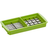 متاسفانه این کالا در حال حاضر موجود نیست. میتوانید از طریق لیست بالای صفحه، از محصولات مشابه این کالا دیدن نمایید.شما هم حرکت سریع دستان سرآشپزهای حرفهای را هنگام قطعهقطعه کردن میوه و سبزیجات با چاقوهای بسیار تیز دیدهاید. تقریبا همهی ما برای یک بار هم که شده، تلاش کردهایم تا این کار مهیج را امتحان کنیم و البته شاهد نتایج دلخراشی بودهایم. مسلما آشپزهای حرفهای، برای انجام این کار، سالهای زیادی تمرین کردهاند تا یاد گرفتهاند چگونه بدون صدمه زدن به دستانشان با سرعت خیلی زیاد، میوه و سبزیجات را به قطعات کاملاً هماندازه، گاهی خیلی ریز و نازک و گاهی درشت تقسیم کنند. نایسر دایسر پلاس …