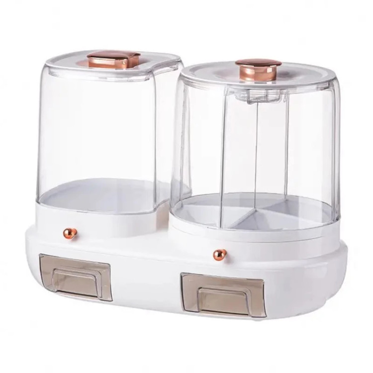 در مورد این مورد جنس: ظروف نگهداری دانه چرخان 360 درجه و ظروف ذخیره برنج از مواد PP ساخته شده اند، ایمن و سالم هستند. آسیب دیدن آن آسان نیست و باعث می شود مواد غذایی ماندگاری بیشتری داشته باشند. پوشش بالایی را می توان برای افزودن آسان دانه جدا کرد. حجم زیاد و چند منظوره: برنج دان با ظرفیت بزرگ می تواند مواد غذایی خشک مختلف مانند ارزن، برنج سیاه، ذرت، سویا، ماش، لوبیا قرمز و غیره را در خود جای دهد. تلگراف غلات با طراحی قابل چرخش 360 درجه . انباری خود را بهتر سازماندهی کنید: با طراحی کانتور، این کار فضای ظرف برنج را کارآمد می کند و به راحتی در هر قفسه، کابینت یا کانتری ذخیره می شود، که برای سازماندهی آشپزخانه و انباری عالی است. ظروف همه کاره و استفاده: ظروف نگهداری غلات می توانند فضای ذخیره سازی برنج و سایر غذاهای خشک مانند فضای ذخیره سازی آرد، لوبیا، تنقلات، غلات، قهوه، چای، غذای حیوانات خانگی و غیره را در خود جای دهند. صرفه جویی در فضا: سطل برنج چرخان را می توان در گوشه قرار داد، فضای آشپزخانه را به حداکثر رساند و چیزها را مرتب نگه داشت. دستگاه های پخش غذای چرخشی برای میز، قفسه های انباری، یخچال، فریزر، کمد، کمد، کمد و غیره ایده آل هستند.