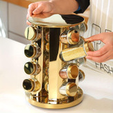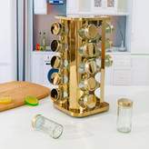 قفسه ادویه جات ترشی جات: با قفسه ادویه طلایی ما که از 20 شیشه و ظرف ادویه تشکیل شده است، می توانید همه ادویه های خود را طوری سازماندهی کنید که دیگر مجبور نباشید بعد از موجودی امروزی پراکنده شوید.