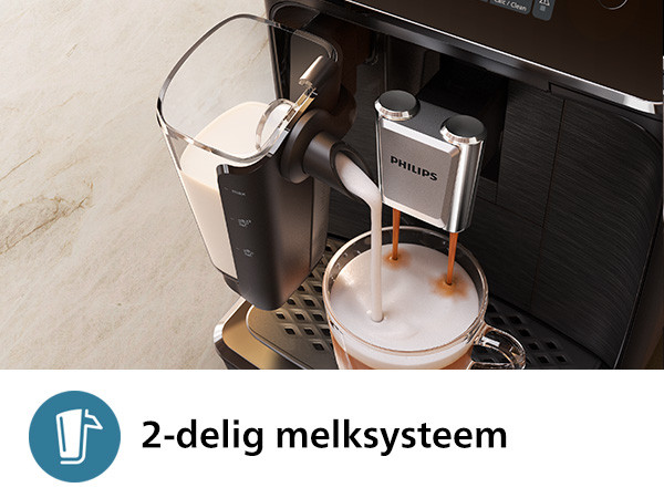 کف صاف ابریشمی: LatteGo به طور خودکار کف شیر ابریشمی را برای قهوه های شیری شما با انواع مختلف شیر آماده می کند. LatteGo سریعترین سیستم شیر پاکسازی شده تاکنون است: 2 قسمت، بدون لوله.