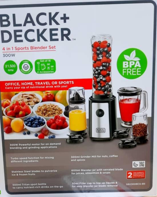 شیکر مخلوط کن 4 کاره بلک اند دکر مدل SBX300-B5 با 2 درجه سرعت کم و زیاد، حجم مخزن 500 میلی لیتر، تیغه هایی با جنس فولاد ضد زنگ، وزن 800 گرم و تیغه های SS و بطری های ورزشی Tritan قابل شستشو در ماشین ظرفشویی هستند و تمیز کردن آن بسیار آسان است.