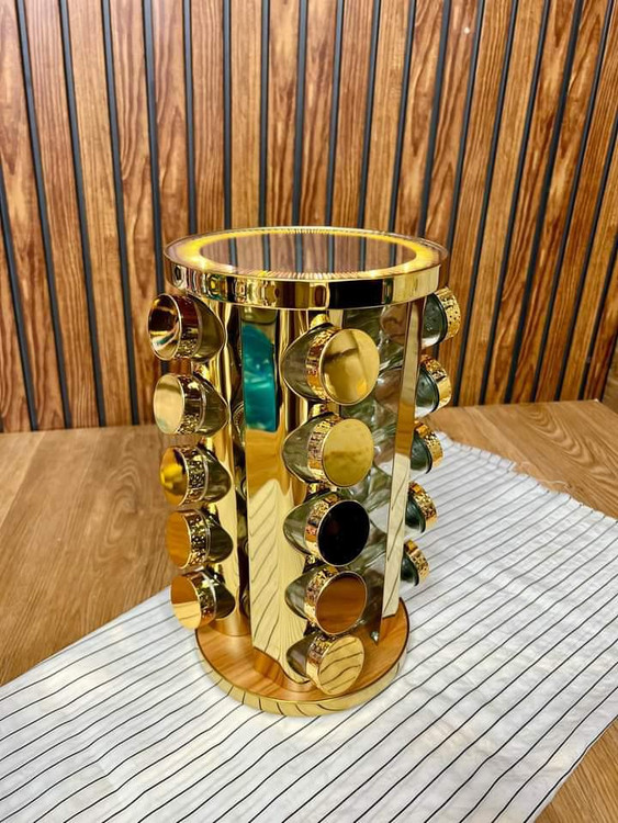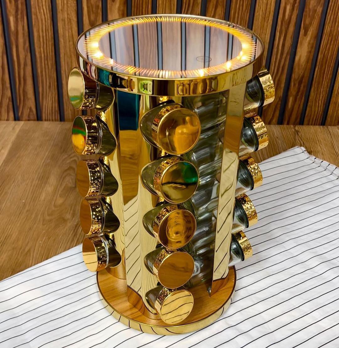قفسه ادویه جات ترشی جات: با قفسه ادویه طلایی ما که از 20 شیشه و ظرف ادویه تشکیل شده است، می توانید همه ادویه های خود را طوری سازماندهی کنید که دیگر مجبور نباشید بعد از موجودی امروزی پراکنده شوید.