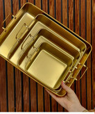 سینی استیل طلایی وارداتی با ظاهری لوکس که مناسب مهمانیها و پذیراییهای خاص است.
