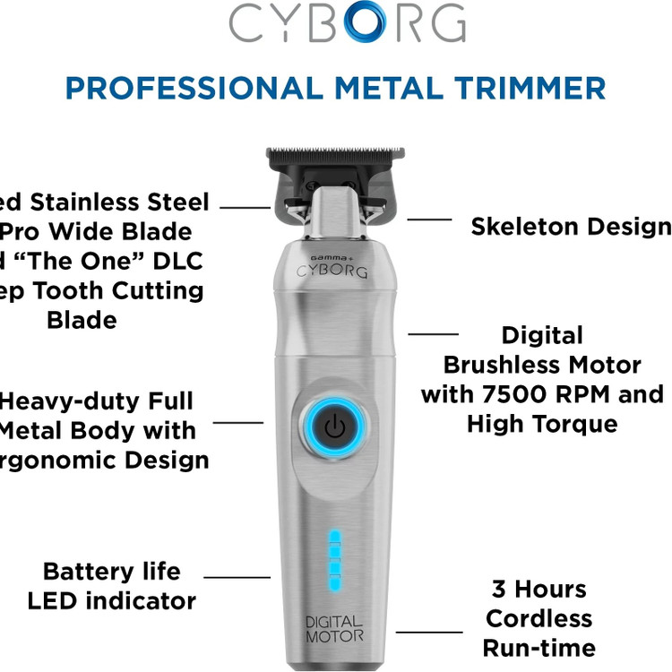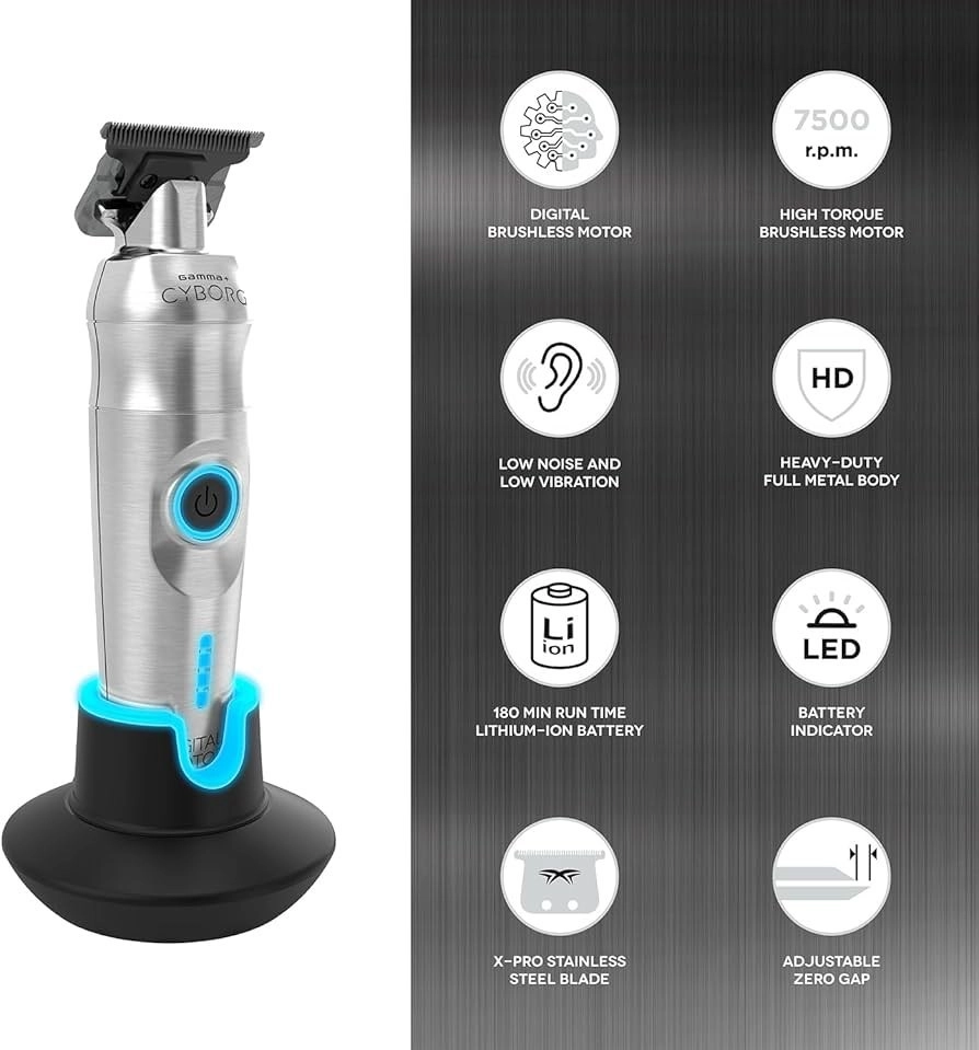 دستگاه خط زن دیجیتال Gamma+ Cyborg با پشتوانه فناوری و طراحی، تجربه اصلاح برتری را ارائه می دهد. پیشرفته ترین موتور دیجیتال براشلس، گشتاور بالا و حداقل لرزش را فراهم می کند و از تریم کارآمد و راحت اطمینان می دهد. سرعت مهم است و با 7500 دور در دقیقه، به کوتاه کردن سریع و دقیق موها دست خواهید یافت.