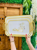 سینی سه تکه پذیرایی دسته مرواریدی