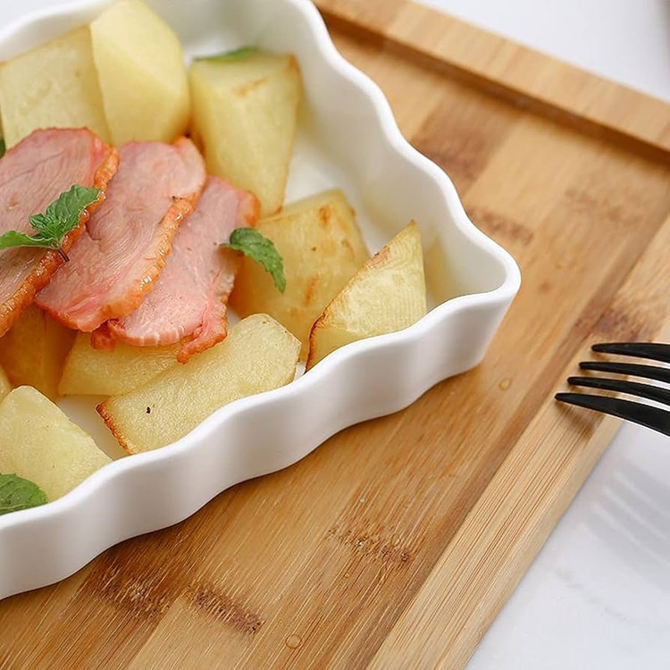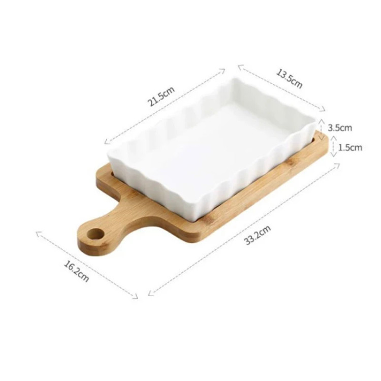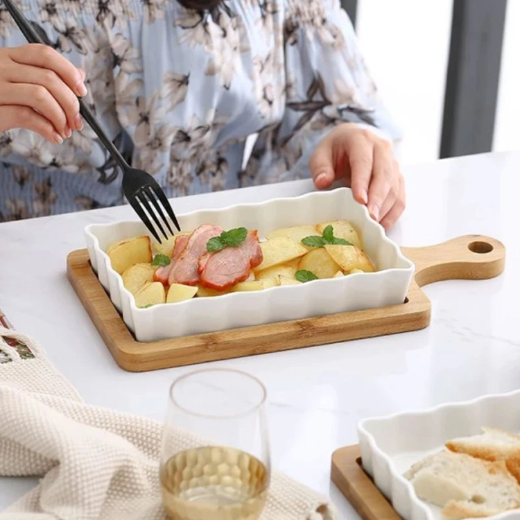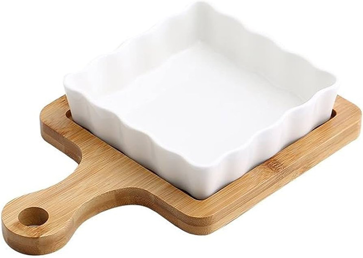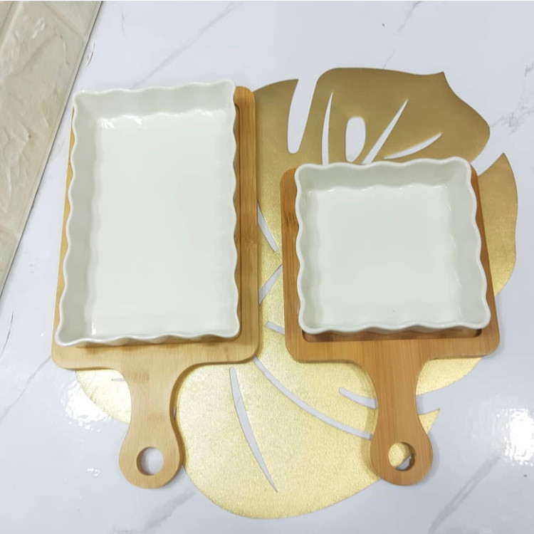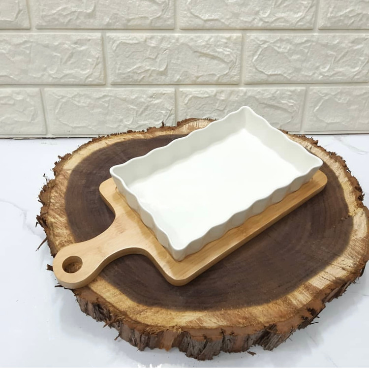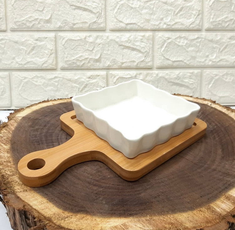 تارت خوری و اردوخوری سرامیکی لبه موجدار با تخته چوبی زیرین