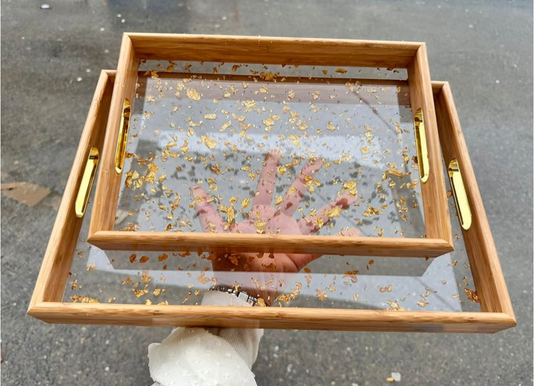 سینی جفتی کف اکرولیک و تزیین شده با ورق طلایی