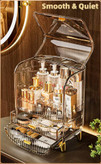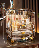 استند لوازم آرایشی و جواهرات اکرولیک رنگ شامپاینی با کشو و درب ضد گردوغبار