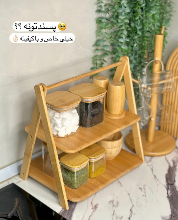 استند دو طبقه بامبو وارداتی - بهترین انتخاب برای نظم و زیبایی فضای شما