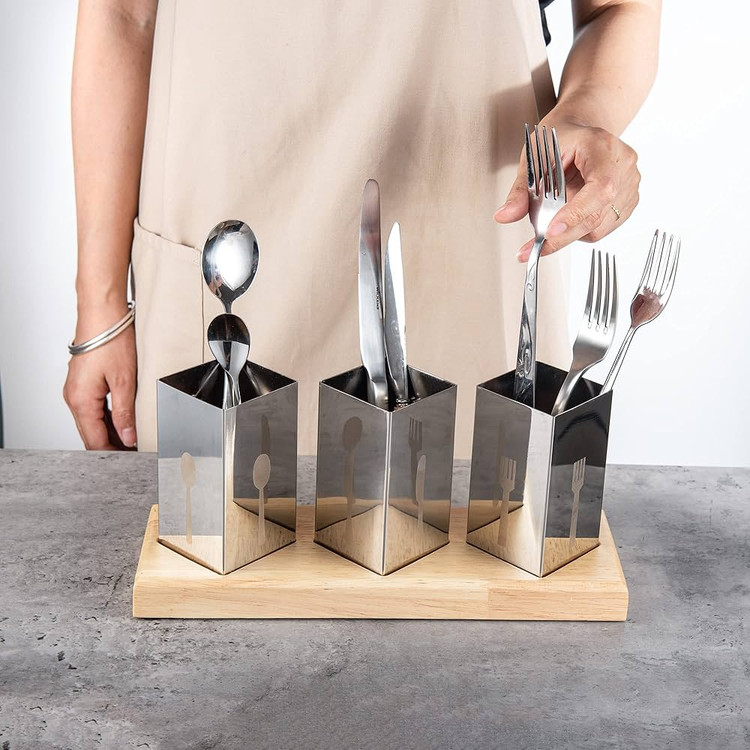 - کاربرد چندمنظوره: مناسب برای نگهداری انواع قاشق، چنگال، چاقو، چوب غذاخوری (چاپستیک) و حتی ابزار آشپزی کوچک