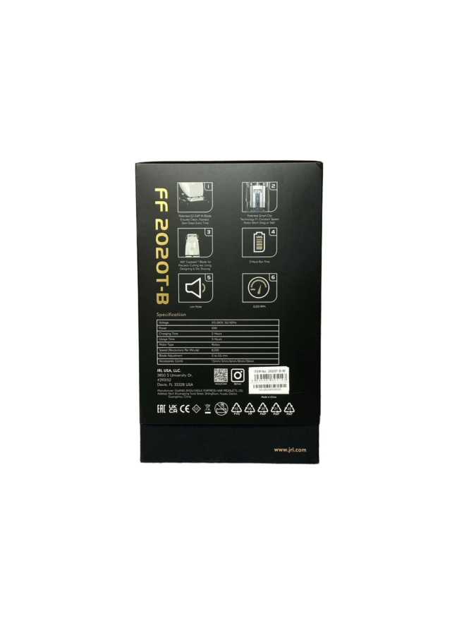 تریمر JRL FreshFade Onyx 2020T مجهز به فناوری Cool Blade است که تیغه را حتی در استفاده طولانی مدت بسیار سرد و تیز نگه می دارد. تیغه های نورانی 360 درجه آرایشگر را قادر می سازد تا خالکوبی مو را انجام دهد. همچنین این ماشین اصلاح مجهز به موتور بی صدا و فناوری Smart-Clip است که استحکام تیغه را حس کرده و سرعت موتور را افزایش می دهد.