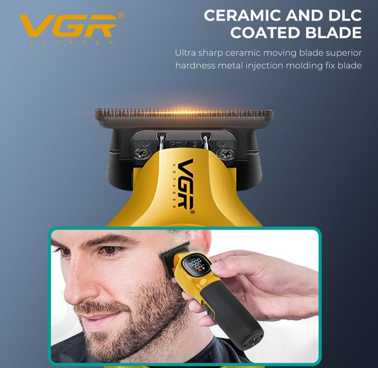 VGR V-886T با بدنهای از جنس پلاستیک ساخته شده است که علاوهبر وزن سبک، مقاومت مناسبی در برابر استفاده روزمره و ضربههای احتمالی دارد. این متریال به خوشدستی دستگاه کمک کرده و استفاده طولانیمدت را بدون خستگی امکانپذیر میسازد. طراحی ارگونومیک آن نیز به راحتی استفاده در هنگام خطزنی کمک میکند. یکی از مهمترین نقاط قوت V-886T، تیغههای آن است. این دستگاه از ترکیب تیغه سرامیکی و با پوشش DLC (Ceramic and DLC Coated Blades) بهره میبرد. تیغههای سرامیکی به دلیل تیزی بینظیر، مقاومت در برابر زنگزدگی و عدم تولید گرما، برشی بسیار نرم و دقیق را تضمین میکنند. پوشش DLC (Diamond-like Carbon) نیز سختی و طول عمر تیغهها را به شکل چشمگیری افزایش میدهد. این ترکیب پیشرفته باعث میشود اصلاحی روان، بدون کشیدگی و با حداقل تحریک پوست را تجربه کنید که برای انواع مو مناسب است.