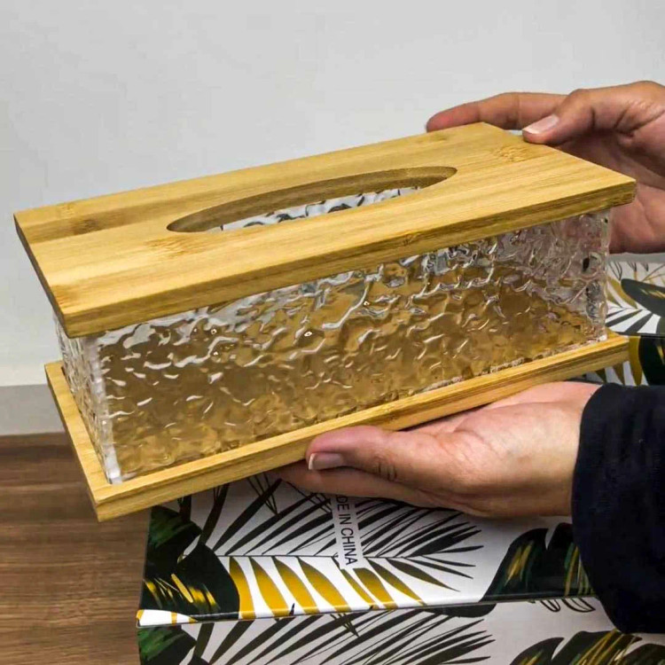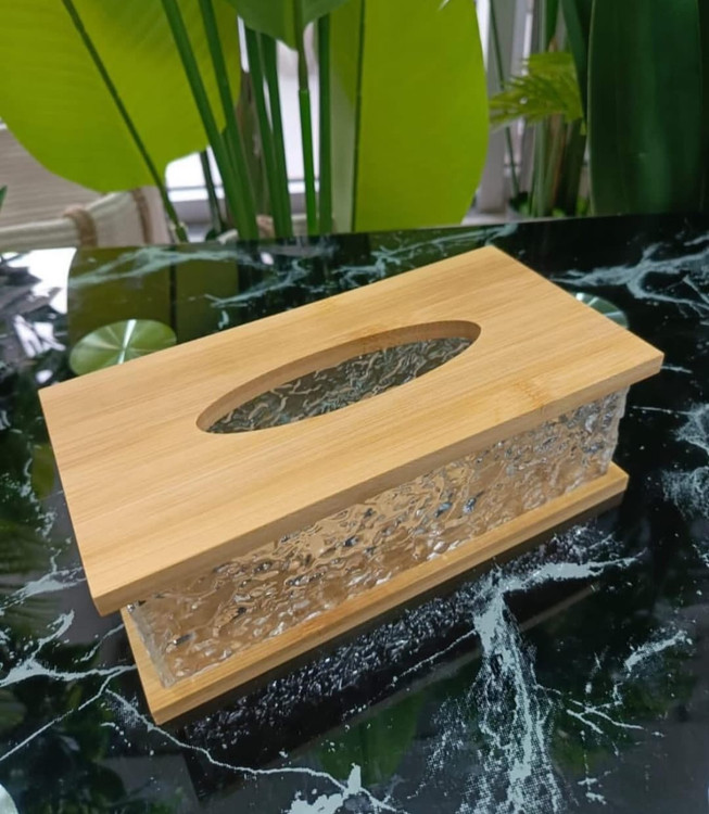 جا دستمالی آکریلیک طرح یخی بامبو، ترکیبی از زیبایی مدرن و طراحی مینیمال است که جلوهای خاص به دکور خانه یا محل کار شما میبخشد. بدنه شفاف و براق آکریلیک با درب چوبی بامبو، این محصول را به گزینهای شیک و کاربردی برای هر سبک دکوراسیونی تبدیل کرده است.