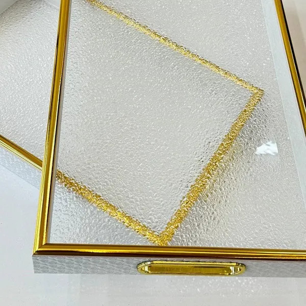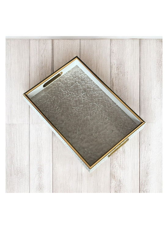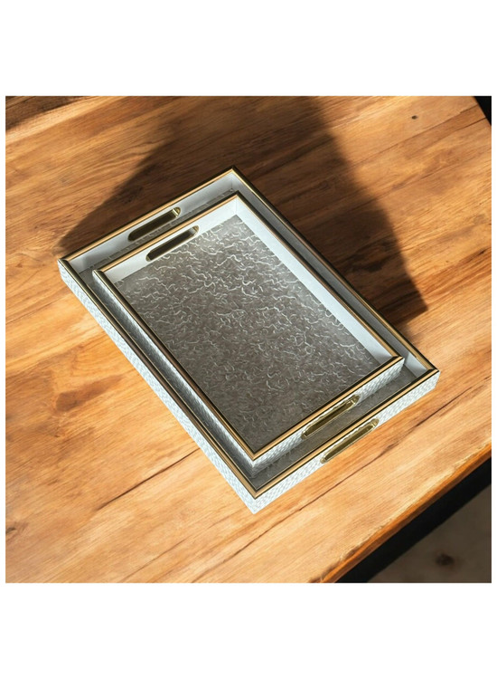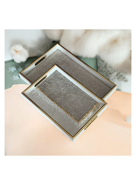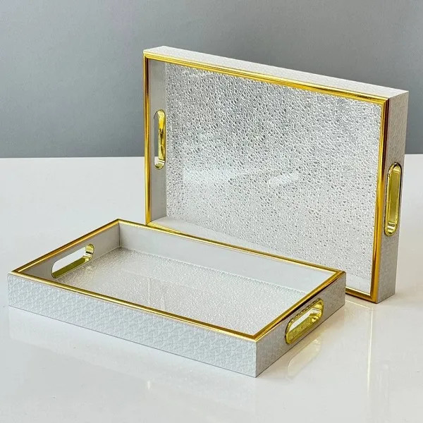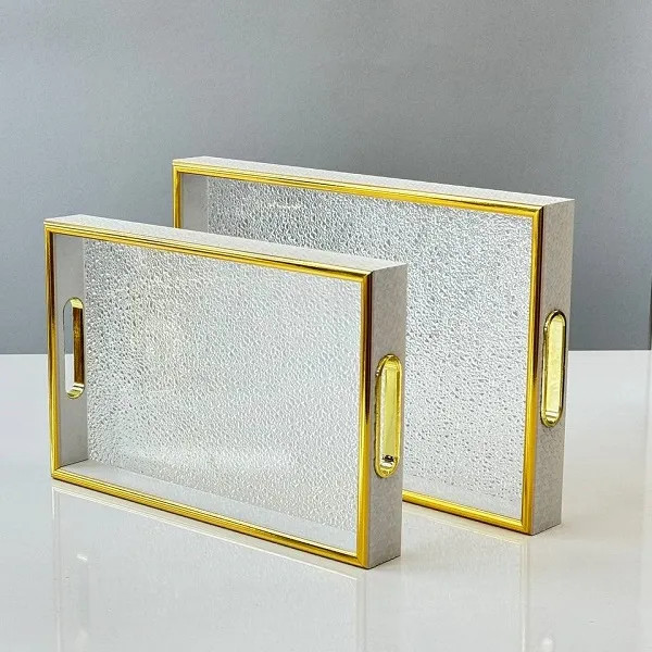 � سینی دو تکه کف اکرولیک طرح یخی با دیواره چرمنما و لب طلایی – نگین جنوب
