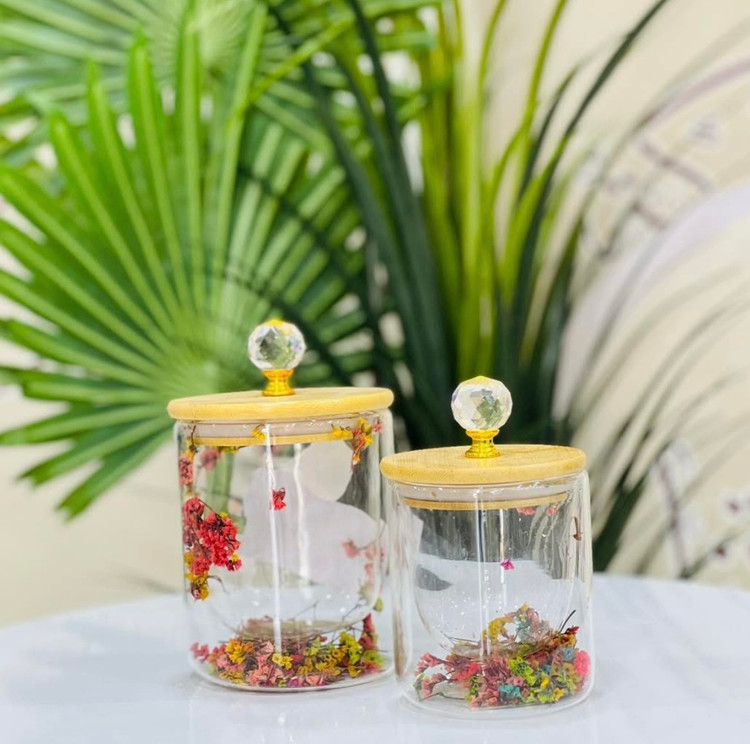 قندان دوجداره گل خشکی، محصولی زیبا و خاص برای عاشقان دکور و ظروف خاصه 💐