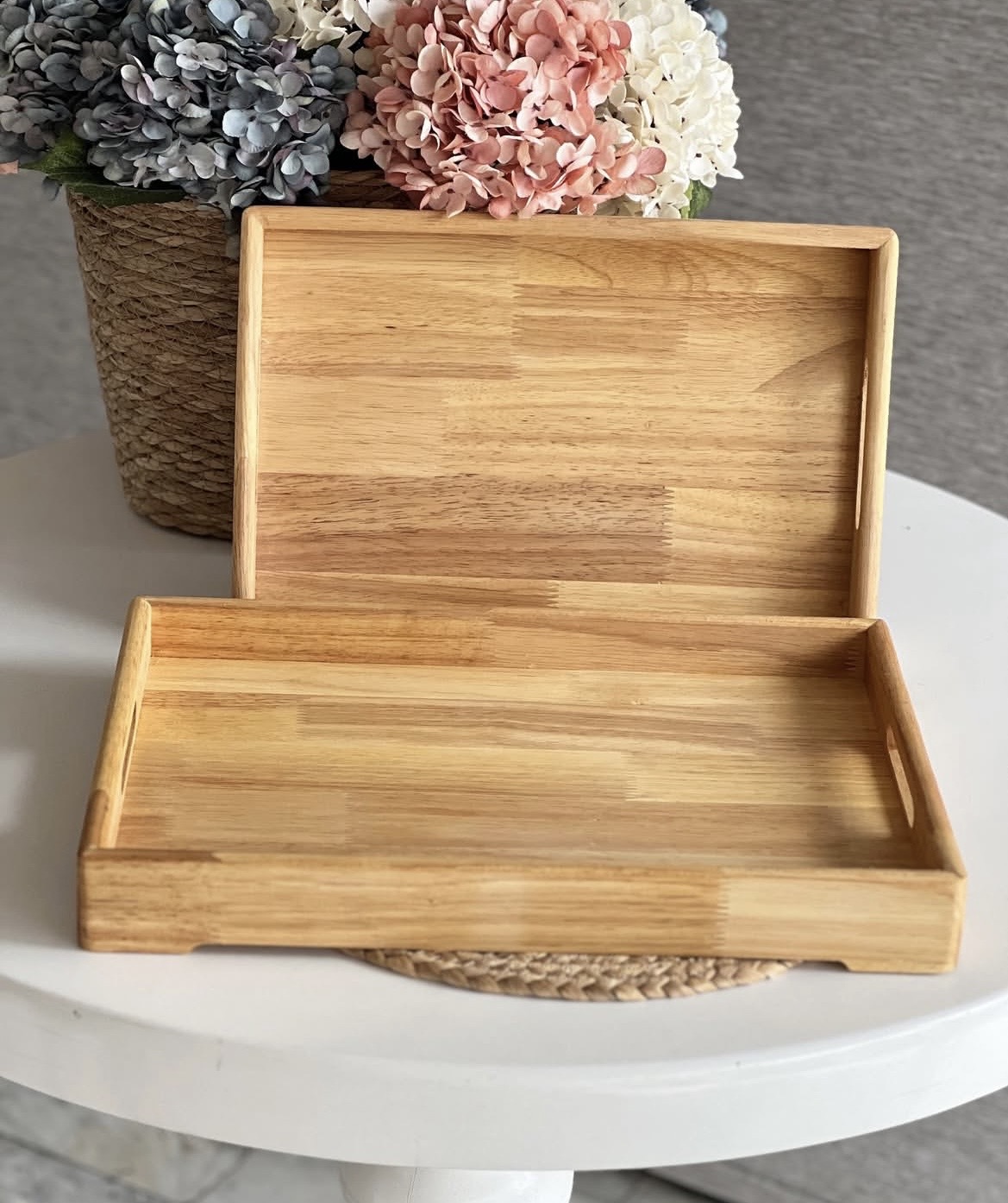 ست دو عددی سینی چوب بامبو با طراحی ساده و طبیعی، مناسب برای پذیرایی و دکوراسیون منزل.