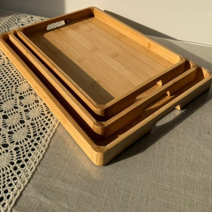 این سینیها از چوب بامبو فشرده و مقاوم ساخته شدهاند و در عین سبکی، دوام بالایی دارند.