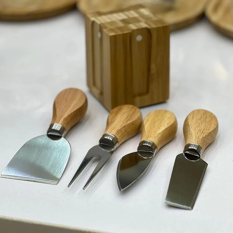 ست چاقو و ابزار پنیرخوری بامبو ۴ عددی با استند مگنتی