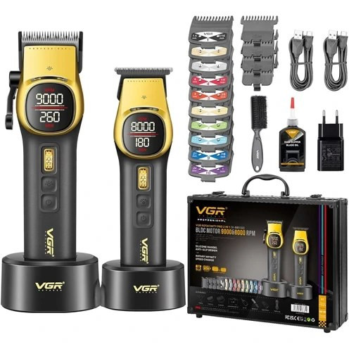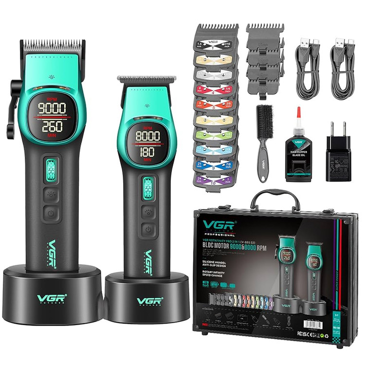 ست ماشین اصلاح دوکاره VGR V-885 S2 یکی از حرفهایترین مدلهای برند VGR است که شامل دو دستگاه قدرتمند (ماشین حجمزن و خطزن) میباشد. این مدل با موتورهای براشلس فوقالعاده سریع و تیغههای سرامیکی با روکش DLC طراحی شده تا اصلاحی دقیق، نرم و بدون آسیب به پوست را برای آرایشگران حرفهای و مصرفکنندگان خانگی فراهم کند.