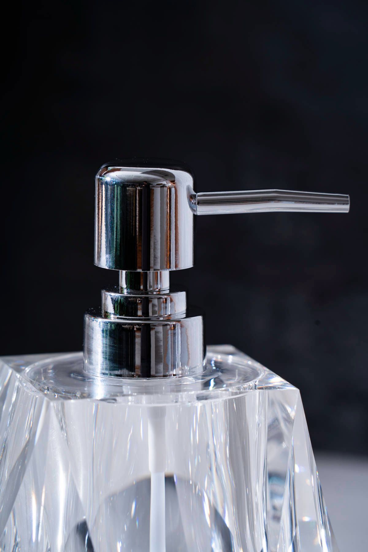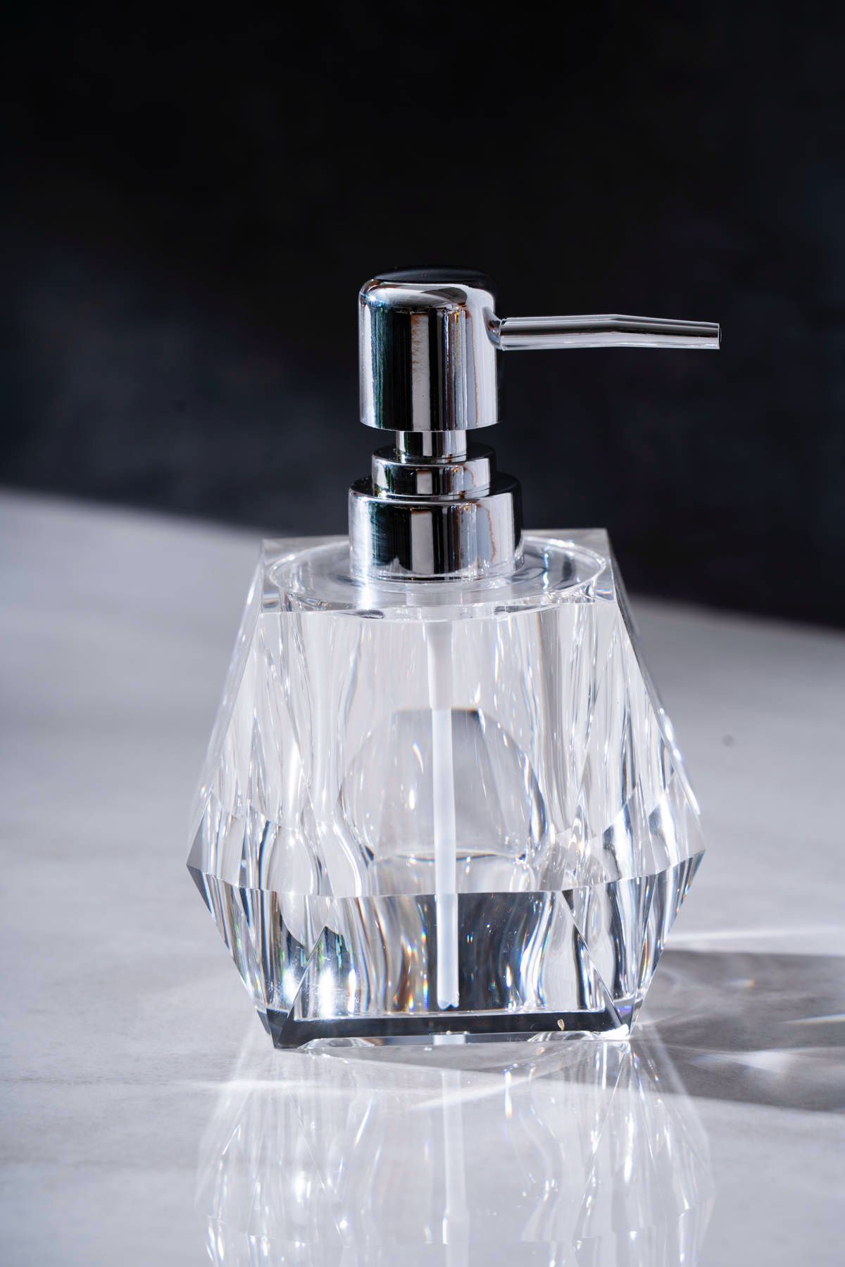 اگر به دنبال جا مایع شفاف و لاکچری هستید که در عین سادگی، درخشش و جلوه خاصی به فضای سینک یا سرویس بهداشتی شما بدهد، این جا مایع اکریلیک طرح الماسی بهترین انتخاب است.