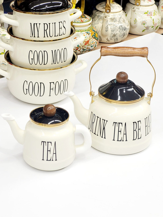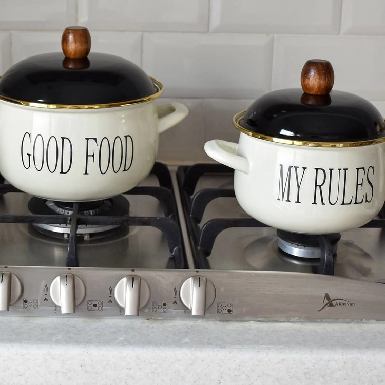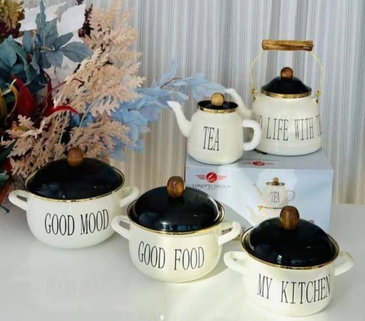 ست زیبای لعابی یک مجموعه کامل، شیک و کاربردی برای آشپزخانههای مدرن و کلاسیک است. طراحی روشن، مینیمال و نوشتههای انگلیسی جذاب، این ست را به انتخابی متفاوت برای پذیرایی و استفاده روزمره تبدیل کرده است. تمام قطعات این ست از لعاب ضخیم و بادوام ساخته شدهاند و برخلاف نمونههای متفرقه، کیفیت بسیار بالاتری دارند.
