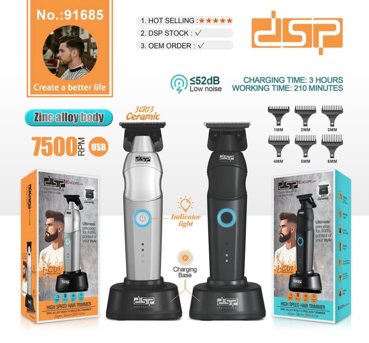 اگر به یک خطزن حرفهای با کیفیت عالی، موتور قوی، تیغه دقیق و باتری واقعی نیاز داری، DSP-91685 یک انتخاب مطمئن و ارزشمند است. هم برای آرایشگاه کاملاً جواب میدهد و هم برای استفاده خانگی باکیفیت عالی عمل میکند.