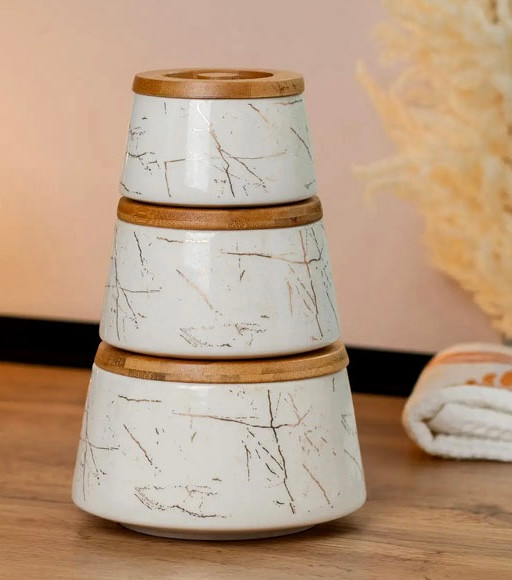 بانکه سرامیکی طرح ماربل درب بامبو – ست ۳ عددی