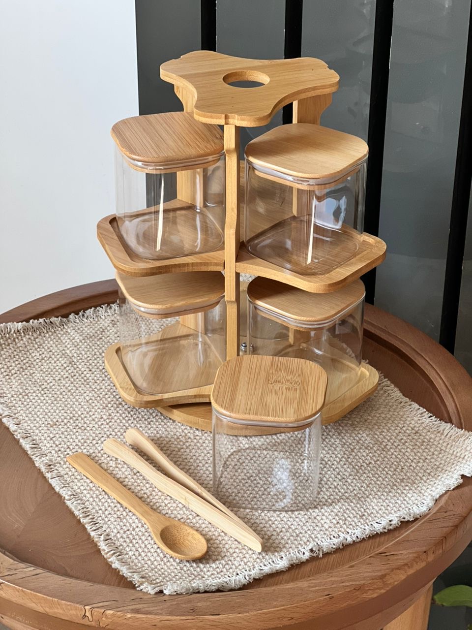 استند جاادویه چرخشی بامبو ۶ عددی دو طبقه (بانکه پیرکس مربع)