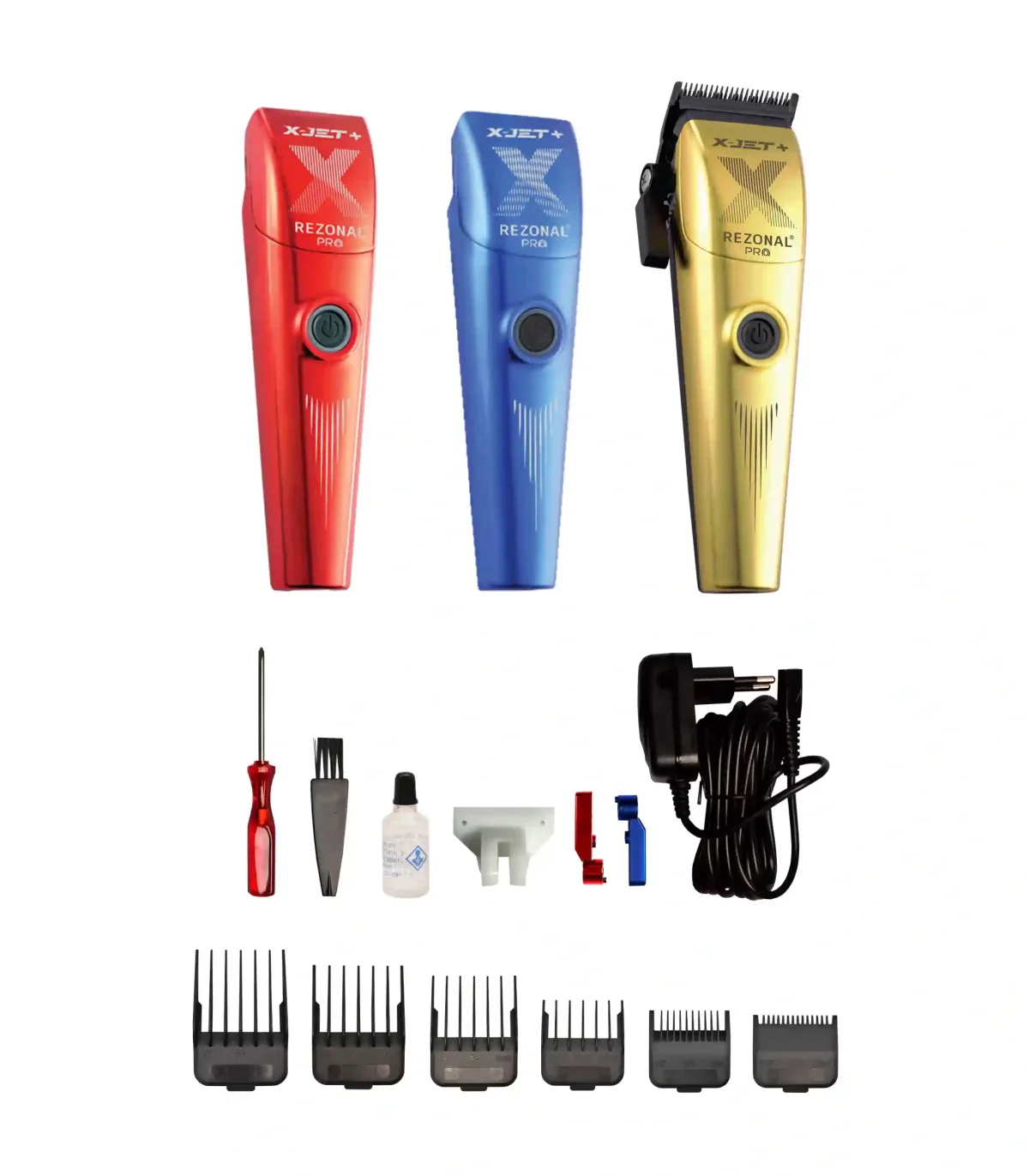 یکی از مزیتهای مهم X-JET PLUS، وجود 3 کیت بدنه قابل تعویض (طلایی، قرمز و آبی) بههمراه 6 شانه دبل مگنتی است که ثبات بالا و نصب سریع دارند. همچنین قطعات یدکی مهم مثل پین درایو یدک، کشویی اضافه با بازشدگی 0.1 گارد بیشتر و پیچ بدنه یدک داخل بستهبندی قرار داده شده؛ چیزی که واقعاً برای مصرف حرفهای ارزش دارد.