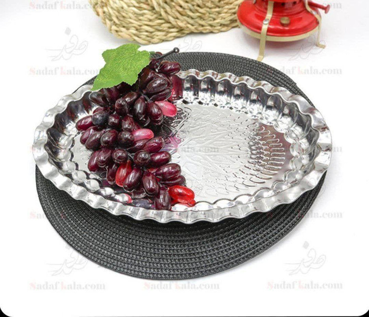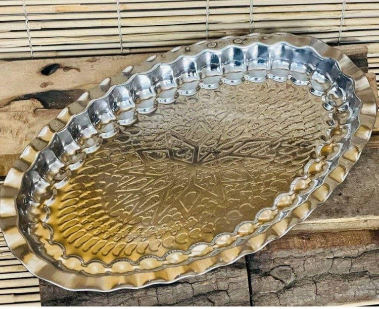 ست دیس و سینی استیل بیضی طرح پرشین (لب کنگرهای نقش برجسته)