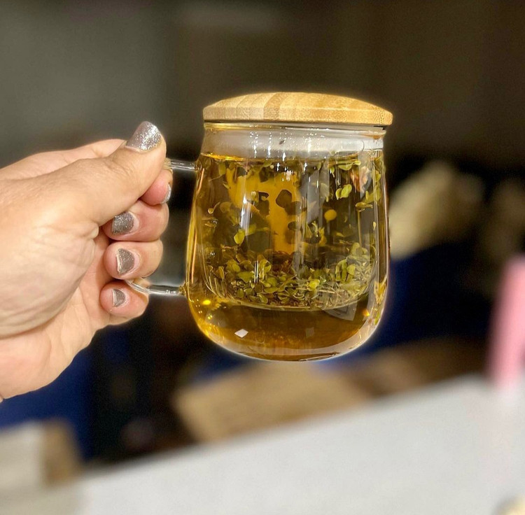 داخل ماگ ، توری تفاله گیر پیرکس داره که قابل برداشتن هست