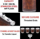 فلاسک هیپ فشرده، متمایز، با کیفیت بالا، ساخته شده از فولاد ضد زنگ با کیفیت بالا. جعبه کادویی فلاسک استیل ضد زنگ با 4 فنجان شیشه شات و یک قیف.