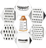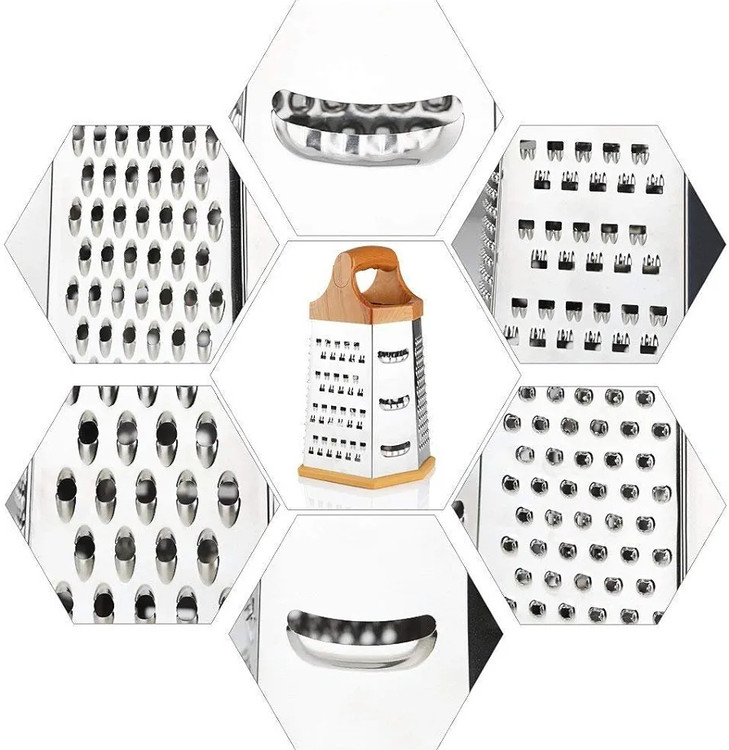 ✔️6 رنده در 1: 1. ماشین ریش تراش درشت 2. فوق العاده درشت 3. خرد کردن متوسط 4. خرد کردن ریز / ریز 5. برش دهنده 6. ستاره خرد کردن. طراحی شش ضلعی رنده چند منظوره انواع ضخامت های خرد شده سفارشی را به شما ارائه می دهد که نیازهای مختلف شما را برآورده می کند.