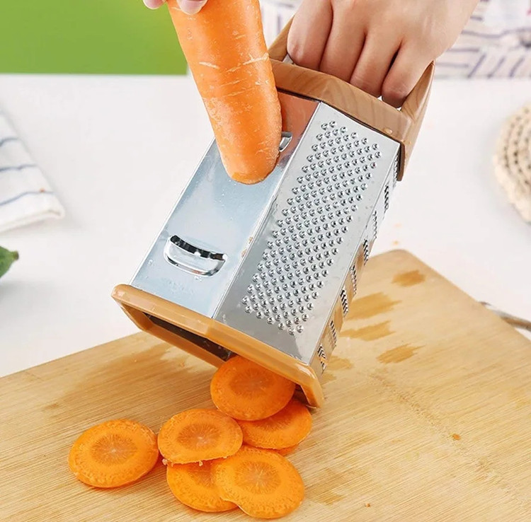 ✔️تیغه های تیز استیل ضد زنگ با اندازه بزرگ رنده کار را به سرعت انجام می دهد و باعث می شود غذای کاملاً برش خورده و رنده شده باشد. کف لاستیکی قابل جابجایی شما را ایمن تر نگه می دارد و از لیز خوردن و سر خوردن روی پیشخوان، تخته برش یا صفحه شما جلوگیری می کند. همچنین از خروج مواد غذایی از ته رنده جلوگیری می کند تا کمتر تمیز کنید.
