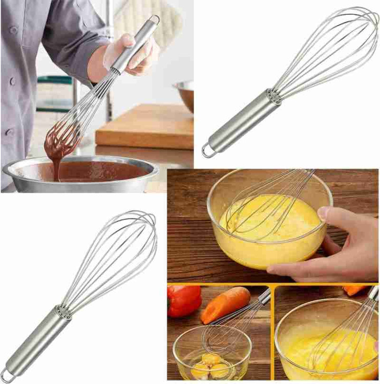 [ویسک های آشپزخانه چند کاره] همزن های سیمی از جنس استیل ضد زنگ با قلاب هستند. همزن بزرگ برای مخلوط کردن سنگین مقداری خمیر پنکیک، دوغاب نشاسته ذرت و غیره مناسب است. علاوه بر این، همزن میتواند تخممرغها، خمیر همزن، خامه را هم بزنید و سسها را راحت هم بزنید. همچنین برای تهیه نوشیدنی های مخلوط مانند قهوه خوب است.