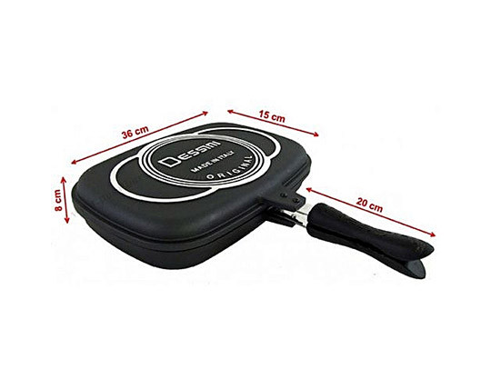استفاده از غذاهای کم چرب ، سلامتی شما را به همراه خواهد داشت . ماهیتابه گرانیتی سایز 36 سانتی متر می باشد و بزرگی تابه این امکان را به شما خواهد داد تا به سادگی و با استفاده از کمترین میزان روغن مقدار زیادی از غذا را طبخ کنید. به همین دلیل این محصول را با عنوان یک ماهیتابه سایز بزرگ رژیمی نیز می توان معرفی نمود.کاربرد ساده در کنار امکان سرخ کردن و تهیه غذای سالم با پخت بهتر از ویژگی های برجسته ماهیتابه دو طرفه رژیمی است یکی از ظروف بسیار پر مصرف آشپزخانه ، ماهیتابه است. ماهیتابه دو طرفه در درجه اول ، به شما این امکان را می دهد تا به سادگی مواد غذایی را برگردانید و در نهایت غذای خود را به صورت یکنواخت درست کنید . این موضوع باعث می شود غذای شما ظاهر زیبای خود را در برگرداندن از دست ندهد. در بین دسته های این ماهیتابه دوطرفه یک آهنربای قوی تعبیه شده و می توانید با بستن درب ماهیتابه ، به راحتی آن را بر گردانید . البته لازم به ذکر است در بین دو تابه یک واشر قرار گرفته که مانع از بیرون ریخت روغن و مواد داخلی ماهیتابه به بیرون خواهد شد. ماهی تابه رژیمی از قسمت جلو توسط 2 عدد آهن ربا و از قسمت پشت توسط گیره های نگهدارنده کاملا محکم می شوند و این سیستم باعث می شود تا در هنگام آشپزی هوا به درون ماهیتابه نفوذ نکند و مواد غذایی در بهترین کیفیت پخته شود سیستم بسته شدن ماهی تابه باعث می شود که مواد غذایی اصطلاحا عرق کرده و آب و روغن خود را رها کند و بدین ترتیب غذا ابتدا در آب و سپس در روغن خود کاملا پخته و سرخ میشود و در نهایت غذای شما دارای ظاهری کاملا چرب و کاملا مغز پخت خواهد شد تابه از جنس گرانیت برای کباب کردن انواع مواد غذایی بدون نیاز به روغن، کره و مارگارین می باشد. این تابه ساخته شده از 4 لایه مخصوص برای شما که می خواهید حرفه ای و سالم آشپزی نمایید تنها کافی است مواد غذایی مورد نظر خود را در ظرف قرار داده و درب آن را ببندید در کمتر از چند ثانیه ظرف شما داغ می شود و تبدیل به یک تنور مدرن برای کباب کردن مواد غذاییتان می شود.