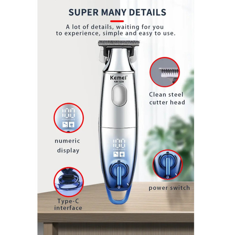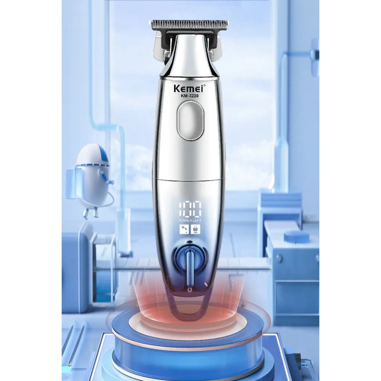 انتخاب یک ماشین اصلاح خط زن باکیفیت و دارای قابلیت های متنوع و امکانات لازم به شما کمک می کند در مدت زمان کم موهای صورت تان را در مدل ها و اندازهایی مختلف اصلاح کنید و ظاهری که دوست دارید را داشته باشید. ماشین های اصلاح خط زن که با نام تریمر نیز شناخته می شوند، دارای تیغه هایی T شکل با اصلاح دقیق و بسیار نزدیک به صفر هستند. ماشین اصلاح کیمی مدلKM-3230 یکی از نمونه های باکیفیت تریمر موجود در بازار است که قابلیت های لازم برای یک اصلاح بدون دردسر و باکیفیت را دارا می باشد. این ماشین از موتور قوی با عملکرد مناسب و سرعت چرخش بالا برخوردار است که قدرت و دقت بالایی را به شما میدهد. تیغه های دستگاه از استیل ضدزنگ باداوم ساخته شده اند. با کابل USB میتوانید این ماشین را در هر جایی که نیاز دارید، شارژ کنید که با 2 ساعت شارژ، میتوانید 120 دقیقه بدون سیم از آن استفاده کنید. از طریق صفحه LCD این ماشین می توانید