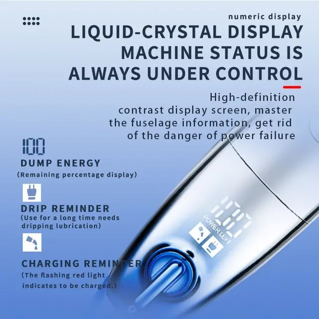 میزان شارژ باقیمانده دستگاه را مشاهده نمایید. اقلام همراه دستگاه شامل 5 شانه با سایز های 1 ،2 ،3 ، 4 و 5 میلیمتری، برس تمیزکننده، روغن روان کننده و کابل USB می باشد.