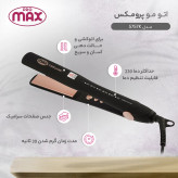 اتو مو «پرومکس» (Promax) مدل «5757K» دارای صفحات سرامیک تورمالین با عرض 26 میلیمتر و حداکثر دمای 230 درجهی سانتیگراد است. دمای صفحات اتو مو را میتوان توسط دکمههای مثبت و منفی روی بدنه تنظیم کرد. 6 دمای قابل تنظیم از 130 تا 230 درجهی سانتیگراد وجود دارد. دمای تنظیمشده توسط یکی از LEDهای روی دسته اتو مو نشان داده میشود. به کمک سیستم گرمایش سریعی که المنت حرارتی سشوار دارد، در مدتزمان 30 ثانیه دمای صفحات به دمای تنظیمشده میرسند. 5757K به کمک قابلیت کراتینه که دارد، باعث میشود موها صافتر، درخشانتر و سالمتر به نظر برسند و وز شدگی موها کمتر شود. سیم برق اتو مو 3 متر طول داشته و در محل اتصال به بدنه حالت چرخشی دارد. برای حمل و نگهداری آسانتر اتو مو یک کیف پارچهای همراه آن ارائه شده است. قسمت داخلی کیف نسوز است و میتوان اتو مو را در حالت داغ داخل کیف گذاشت. بهطور خلاصه اتو مو پرومکس 5757K دارای صفحات سرامیک تورمالین با عرض 26 میلیمتر، 6 دمای