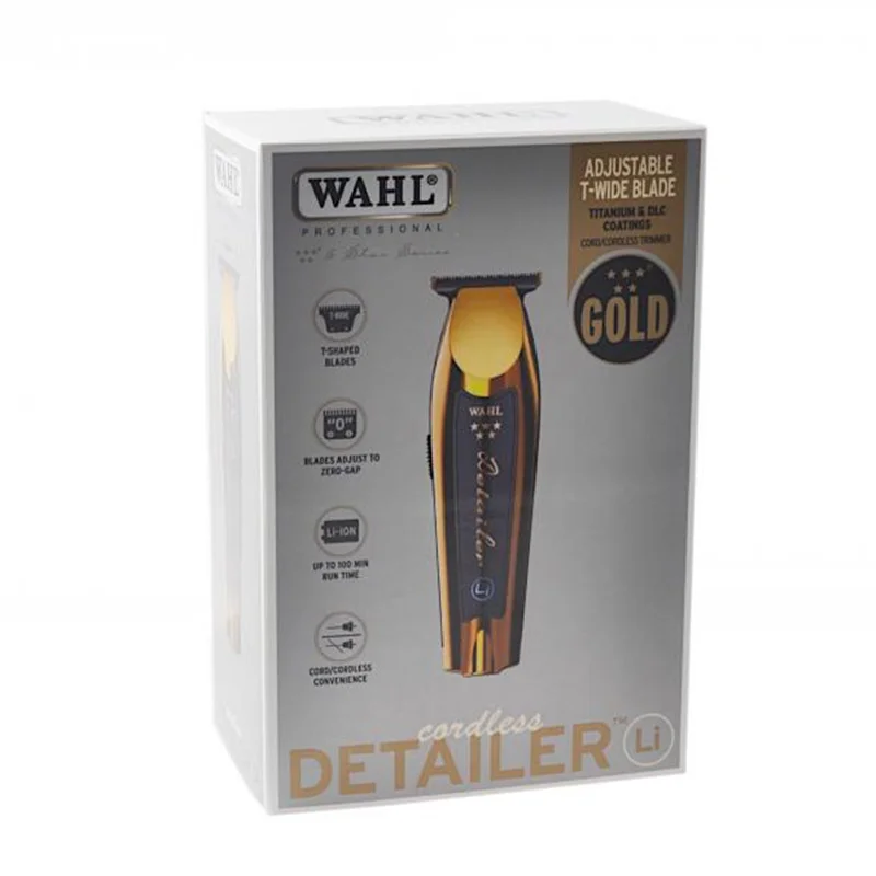ماشین اصلاح سر و صورت وال خط زن 5 ستاره دیتیلر ال آی گلد Wahl 5 Star Cordless Detailer Li Gold Trimmer 8171-700 تیغه T-wide دارای پوشش های تیتانیوم و DLC است بنابراین تیغه ها خنک تر می مانند و در نتیجه در برابر خوردگی مقاوم هستند و بسیار قوی هستند.تیغه T-wide قابل تنظیم (#2215-700) را می توان با فاصله صفر برای کوتاه کردن بسیار نزدیک به صفر استفاده کرد.وال دیتیلر گلد از یک موتور قیچی قدرتمند و کامل برای اصلاح صاف انواع مو استفاده می شود که بیش از 100 دقیقه کار می کند و دارای باتری ال آیتیوم یونی با شارژ هوشمند LED است