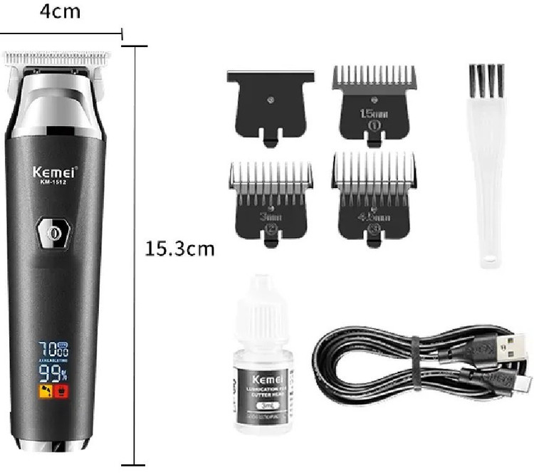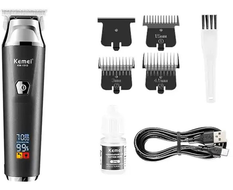 اطلاعات بیشتر : معرفی ماشین اصلاح موی صورت کیمی مدل KM-1512 از جمله جدیدترین ماشین های اصلاح خط زن با کیفیت بالا و موتور قدرتمند با دور موتور 7000 دور بر دقیقه می باشد. توان مصرفی دستگاه 5 وات بوده و از باتری لیتیوم- یونی1200 میلی آمپر ساعتی استفاده می کند که با هر بار شارژ کامل، می تواند 3 ساعت به صورت مداوم کار کند صفحه نمایش LED برای نشان دادن وضعیت باتری است. تیغههای دستگاه از استیل ضد زنگ ساخته شده که در برابر رطوبت و زنگ زدگی مقاوم بالایی دارد و در صورت برخورد تیغه با پوست هیچگونه حساسیتی ایجاد نخواهد کرد. اقلام همراه محصول شامل موارد زیر می باشد: 3 عدد شانه 1.5 3 4.5 میلیمتری که به شما امکان میدهد طول موهای خود را به دلخواه تنظیم کنید، کابل USB که شما را قادر میسازد ماشین اصلاح خود را از طریق هر منبع تغذیهای که دارای درگاه USB باشد شارژ کنید، روغن روان کننده که به شما کمک میکند تیغههای ماشین اصلاح خود را همیشه تمیز و روان نگه دارید و برس تمیز کننده که به شما امکان میدهد موهای ریز و گرد و غبار را از ماشین اصلاح خود بردارید. به طورکلی می توانید از این دستگاه برای خط زنی، صفر زنی و اصلاح سر